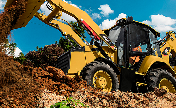 A parte frontal da retroescavadeira apresenta uma pá que pode ser usada para carregar materiais como terra, cascalho, areia e entulho. Enquanto isso, na parte traseira, há uma lança com um braço articulado e uma caçamba, que permite escavar o solo e realizar tarefas como cavar valas, nivelar terrenos e realizar trabalhos de escavação mais precisos.